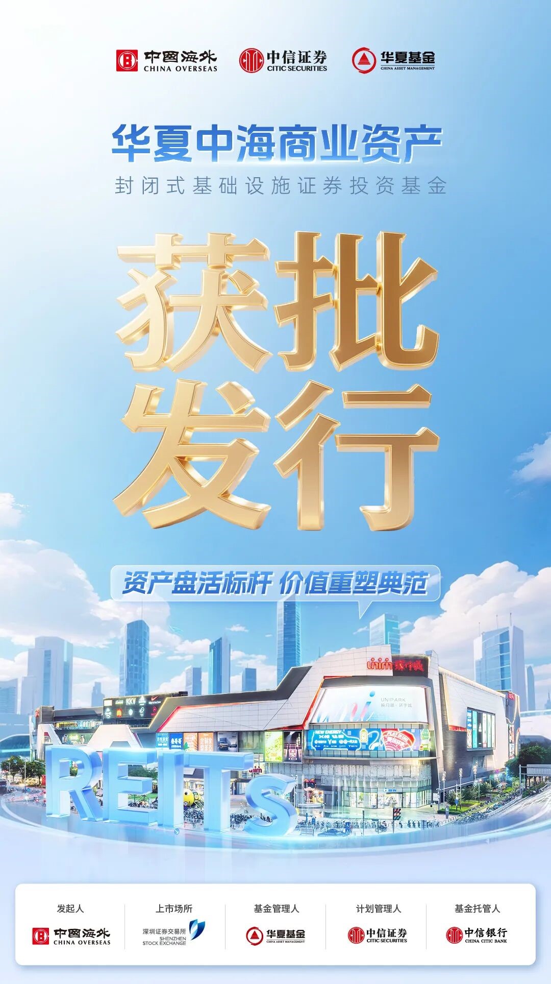 9月23日,由中國海外發展有限公司(股票代碼:00688.HK,以下簡稱“中海”)發起的華夏中海商業REIT正式取得中國證監會准予註冊批復及深圳證券交易所無異議函,在國內消費類基礎設施REITs項目中最快實現“收購-調改-盤活-上市”閉環,標誌著中海資產運營管理又一里程碑式突破。
